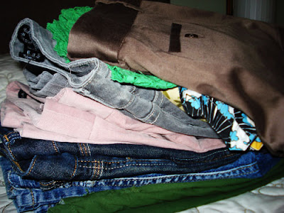 6 calças, duas saias e um short para serem ajustados na costureira…