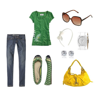 Essa é minha roupa de todo dia. Calça jeans + sapatilha+camiseta+maxi bolsa. Eu preciso estar confortável no trabalho, nunca sei como vai ser meu dia, e ao mesmo tempo, levo tudo o que acho que vou precisar na minha mala-bolsa (que é amarelo ovo igual essa da foto!!). Logo, tenho muuuuitas sapatilhas e sandalinhas, muitas camisetas (apesar deu querer reverter isso) e calças jeans. Essas são peças que uso sempre, então faz sentido eu comprar uma sapatilha de cor nova numa liquidação, por exemplo, ou camisetas baratinhas.