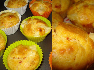 Muffins de tomate seco e provolone, devorados com o queijo ainda derretendo, quentiiiiiinhos, que deixaram a casa com o cheirinho bom de pãozinho assando. Não demorei 1 hora pra fazer, matei a vontade e ainda super calei a boca do marido, que duvidou que iriam ficar bons e até queria comprar pão “pra caso não dê certo”. Há.
