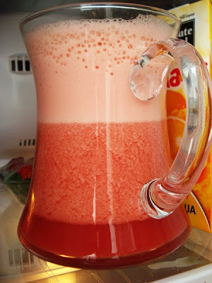 É uma mousse diet de cereja e morango, que é gostosa, simplérrima de fazer e ainda por cima tem poucas calorias. Sucesso total.