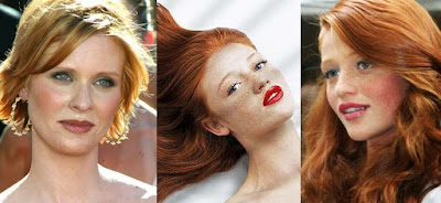 Ruivas são mto loosho, pq já são coloridas naturalmente. Então devem tomar cuidado para não escolherem tons que briguem com as cores naturais da pele (normalmente rosada) e do cabelón. Cor na boca fica lindo, mas cuidado com os tons mais fortes! Se for exagerar na boca, use só rímel e iluminador e olhe lá, pq vc já chama atenção naturalmente né?