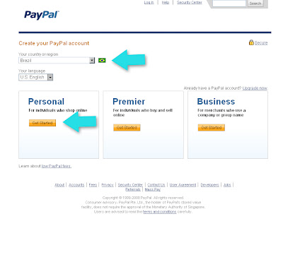 Na página seguinte, selecione seu país e em seguida clique em get started, na aba Personal.