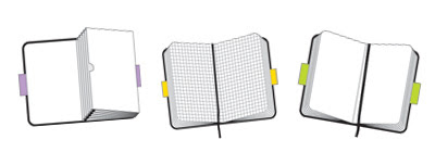 Eles são sempre no mesmo padrão: Capa de material impermeável, cantos arredondados, elástico fechando e segurando tuso e um marcador de páginas. Existem vários tipos, com ou sem pauta, agenda, organizador… Uma coisa engraçada é que todos têm na folha de rosto um espaço para o dono preencher com o valor de resgate caso aquele Moleskine seja perdido por aí.