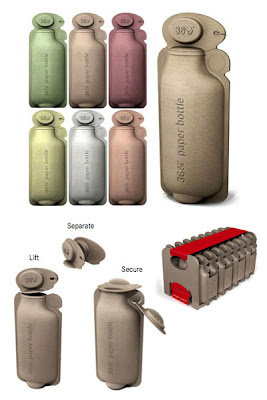 Não são só as sacolinhas de plástico de supermercado que poluem o planeta. As bilhares de garrafinhas plásticas também colaboram – e muito – para o estrago. Para vocês terem idéia, somente nos Estados Unidos são descartadas 60 milhões de garrafinhas plásticas por dia! Pensando nisso, uma empresa chamada Brandimage decidiu criar uma garrafa feita de papel! A garrafinha serve para vários tipos de líquidos e é reutilizável (Até certo ponto), e pode ser utilizada como embalagem para produtos. De tão genial, a garrafinha ganhou um prêmio IDEA (International Design Excellence Award). Agora é esperar pra ver se as empresas entram na onda.