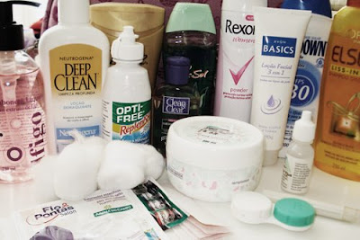 A segunda necessaire era de maquiagem, e levei as coisas que costumo usar no dia a dia e alguma coisinha para um make especial de Reveillon… A única bobagem foi ter levado base, que não rola de usar mesmo!!! É muito quente pra isso, fora que fica pesado na praia, mesmo de noite né (pelamor, não pensem que eu saía de bikini e base!! hahaha)!