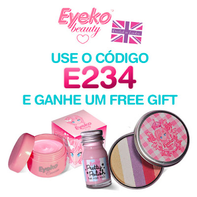 Tudo de bom né? Mas ficou melhor! Quem colocar, no finalzinho do processo de compras o código E234 (meu código Eyeko), ganha da Eyeko um presente surpresa!!!