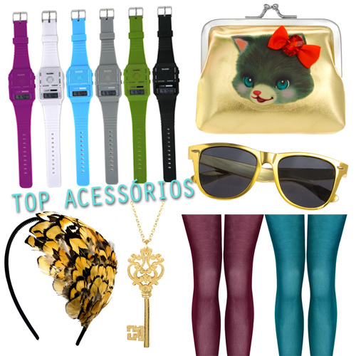 Não é tão difícil quanto parece! Por exemplo: todo mundo sabe que mudando os acessórios, mudamos completamente uma roupa. Então você, garota chic, vai ter vários básicos/clássicos de qualidade no armário, e o que vai atualizar seu look são meias calças coloridas, acessórios de cabelo, óculos mega divertidos… Mantendo uma boa base, tudo o que você precisa é de 5 acessórios como esses por estação, e além de gastar menos, você não perde tempo em busca de 361264136 peças de roupa.