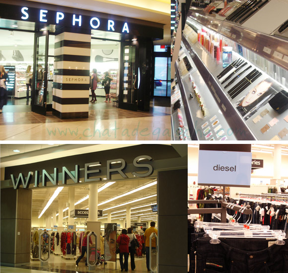 Para quem procura preços mais amigos, como diz a Lú, as lojas de departamento como Winners, Sears e The Bay, você encontra marcas como Diesel, Cavin Klein, Ralph Loren, Tommy Hilfiger e ainda perfumes, sapatos e tudo que uma loja de departamento pode oferecer!